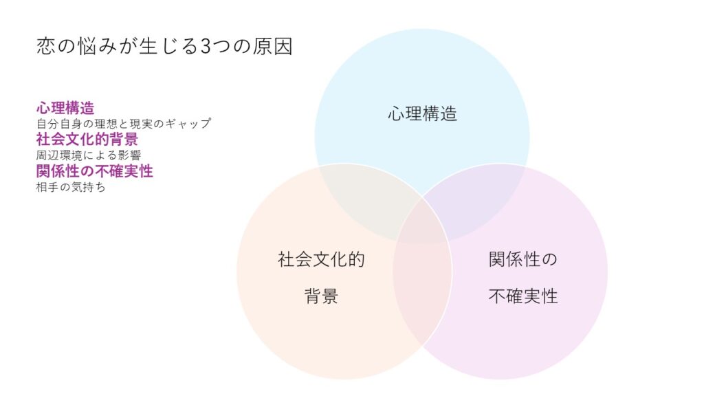ここでは、恋愛に苦しみが生じる根本的な要因を3つの視点から整理してみましょう。