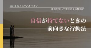 「自分に自信が持てないから、関係を進められない…」そんな不安を抱えていませんか? 曖昧な関係が続くと、自分の価値を疑ってしまいやすいものです。 この記事では、自…